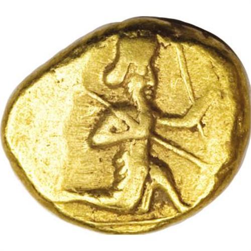 <B>Achaemenid Kingdom. Darios I to Xerxes I.</B></I> Ca. 485-420 B.C. AV daric (17 mm, 8.39 gm). Persian king or hero in kneeling-running stance right, holding spear and bow / Incuse punch. Carradice IIIb, A/B. Good Fine. <BR><BR><BR><b>Shipping:</b> Coins & Currency (<a target="_blank" href="http://www.heritageauctions.com/common/shipping.php">view shipping information</a>)