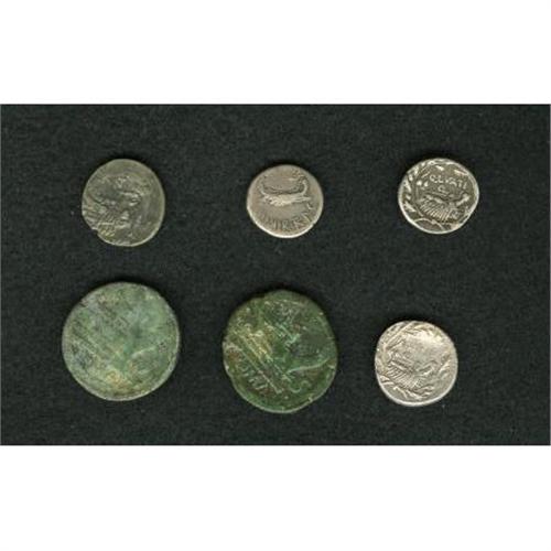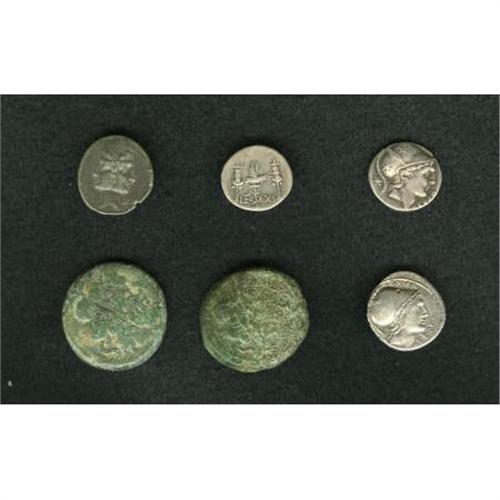 <B>Lot of six Roman Republican coins depicting war galleys.</B></I> Includes: Uncertain. AE as (2) // Q. Lutatius Cerco. AR denarius (2) // C. Fonteius // Mark Antony. LEG XXI. Average Fine to VF.<BR><BR><b>Shipping:</b> Coins & Currency (<a target="_blank" href="http://www.heritageauctions.com/common/shipping.php">view shipping information</a>)