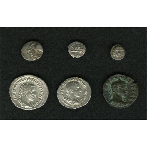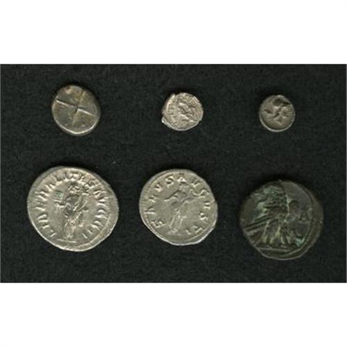 <B>Lot of six miscellaneous ancient coins.</B></I> Includes: Thrace, Cheronessos. AR hemidrachm // Pisidia, Selge. AR trihemiobol // Phoenicia, Byblos. AR 1/8 shekel // Roman Egypt. Claudius II Gothicus. BI tetradrachm // Gordian III. AR denarius // Philip I. AR double denarius. Average Fine to VF.<BR><BR><b>Shipping:</b> Coins & Currency (<a target="_blank" href="http://www.heritageauctions.com/common/shipping.php">view shipping information</a>)