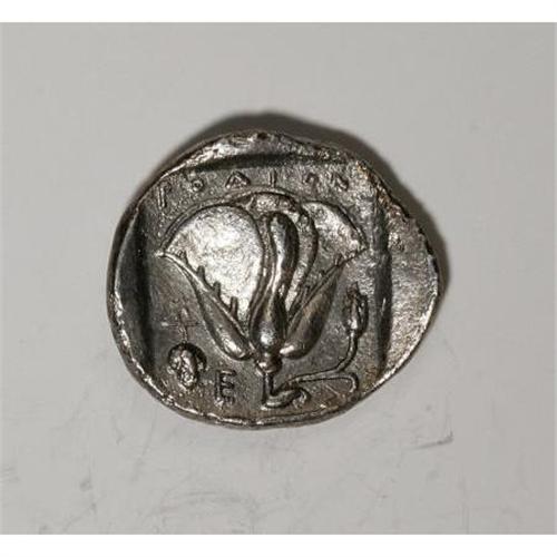 <B>Lot of two Greek silver coins.</B></I> Includes: Lucania, Velia. Nomos // Carian Islands, Rhodes. Didrachm. Average Fine to VF, the Rhodian didrachm corroded.<BR><BR><b>Shipping:</b> Coins & Currency (<a target="_blank" href="http://www.heritageauctions.com/common/shipping.php">view shipping information</a>)