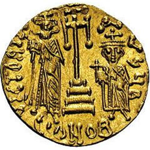 <B>Constans II.</B></I> 641-668 AD. AV Solidus (19 mm, 4.33 g). Constantinople, ca. A.D. 661-ca. 663. Crowned facing busts of Constans and Constantine IV; cross above / Cross potent on three steps between standing figures of Heraclius and Tiberius; B/CONOB. DOC 30b; SB 964. XF.<BR><BR><b>Shipping:</b> Coins & Currency (<a target="_blank" href="http://www.heritageauctions.com/common/shipping.php">view shipping information</a>)