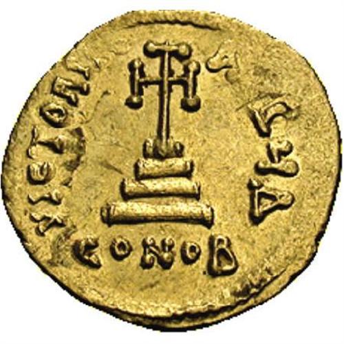 <B>Constans II.</B></I> A.D. 641-668. AV solidus (19 mm, 4.46 g). Constantinople, A.D. 641-646. Crowned facing bust, holding globus cruciger / Cross potent on three steps; (Delta)/CONOB. DOC 1d; SB 938. XF, some striking weakness.<BR><BR><b>Shipping:</b> Coins & Currency (<a target="_blank" href="http://www.heritageauctions.com/common/shipping.php">view shipping information</a>)