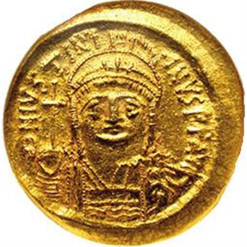 <B>Justinian I.</B></I> A.D. 527-565. AV solidus (19 mm). Constantinople, A.D. 545-565. Diademed, helmeted and cuirassed bust facing slightly right, holding spear and shield / Angel standing facing, holding long staff surmounted by a Christogram and globus cruciger; star in right field; (Theta)/CONOB. DOC 9i; SB 140. AU NGC. <BR><I>From the Marrero Family Collection.</B></I><BR><BR><b>Shipping:</b> Coins & Currency (<a target="_blank" href="http://www.heritageauctions.com/common/shipping.php">view shipping information</a>)