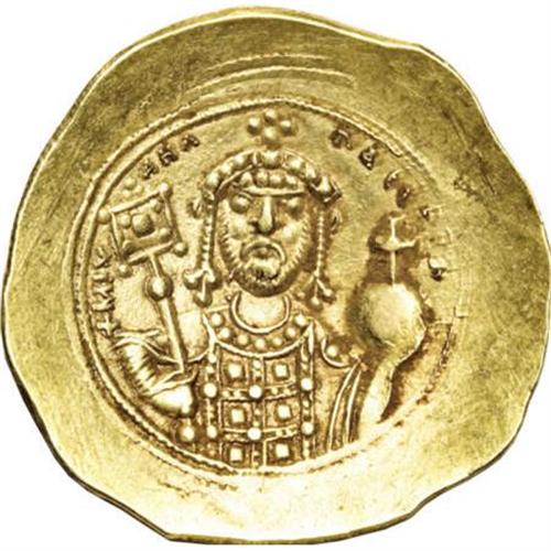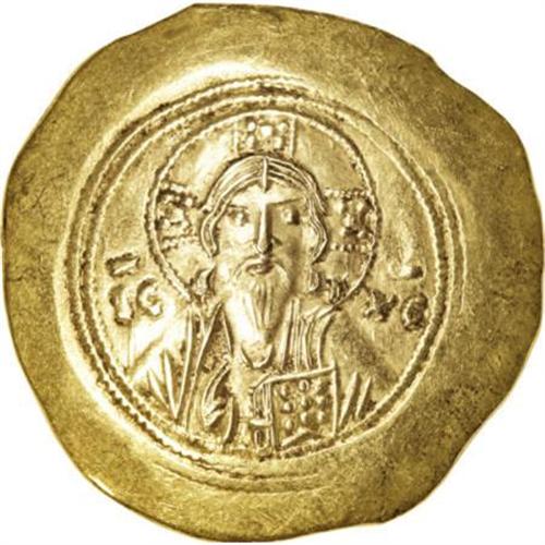 <B>Michael VII.</B></I> 1071-1078. AV histamenon nomisma (29 mm, 4.35 g). Constantinople. Bust of Christ facing, raising right hand in benediction and holding Gospels / Crowned facing bust of Michael, holding labarum and globus cruciger. DOC 2b; SB 1868. VF. <I>Ex Coin Galleries (7 August 1985), 482.</B></I><BR><BR><b>Shipping:</b> Coins & Currency (<a target="_blank" href="http://www.heritageauctions.com/common/shipping.php">view shipping information</a>)