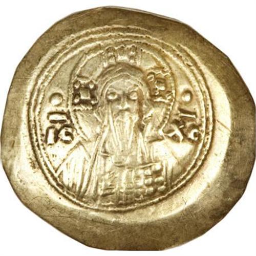 <B>Michael VII.</B></I> 1071-1078. AV histamenon nomisma (28 mm, 4.35 g). Constantinople. Bust of Christ facing, raising right hand in benediction and holding Gospels / Crowned facing bust of Michael, holding labarum and globus cruciger. DOC 2d; SB 1868. Fine. <BR><BR><b>Shipping:</b> Coins & Currency (<a target="_blank" href="http://www.heritageauctions.com/common/shipping.php">view shipping information</a>)