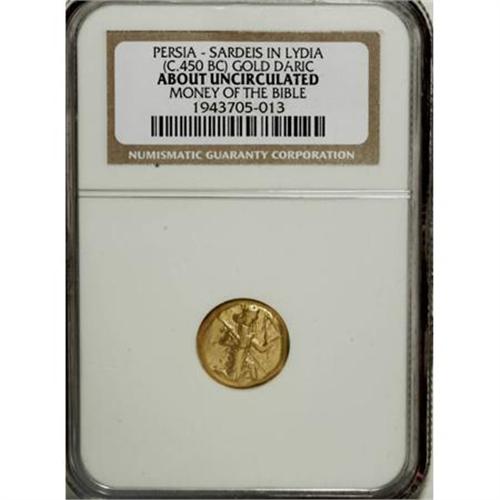 <B>Achaemenid Kingdom. Time of Darius I to Xerxes I.</B></I> Ca. 485-420 B.C. AV daric (14 mm). Persian king or hero in kneeling-running stance right, holding spear and bow / Rectangular incuse punch. Carradice IIIb, A/B. AU NGC.<BR><BR><b>Shipping:</b> Coins & Currency (<a target="_blank" href="http://www.heritageauctions.com/common/shipping.php">view shipping information</a>)