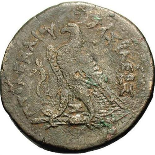 <B>Ptolemaic Kingdom. Ptolemy IV.</B></I> 221-205 B.C. AE 42 mm (70.93 g). Alexandria. Diademed head of Zeus-Ammon right / Eagle standing left on thunderbolt; cornucopiae in left field, letters between legs. Svoronos 992; SNG Copenhagen 205 var. Near VF, dark brown patina.<BR><BR><b>Shipping:</b> Coins & Currency (<a target="_blank" href="http://www.heritageauctions.com/common/shipping.php">view shipping information</a>)
