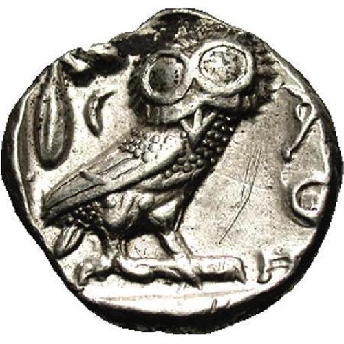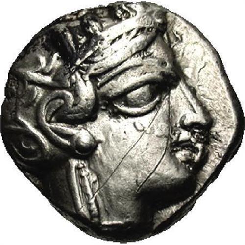 Attica, Athens. Ca. 449-413 B.C. AR tetradrachm (23 mm, 17.17 g). Helmeted head of Athena right / Owl standing right, head facing; olive-spray with berry and crescent above. Svoronos pl. 14; SNG Copenhagen 31-40. VF, several scratches.<BR><BR><b>Shipping:</b> Coins & Currency (<a target="_blank" href="http://www.heritageauctions.com/common/shipping.php">view shipping information</a>)
