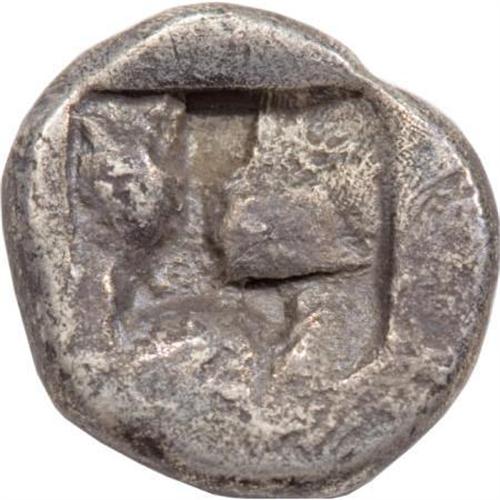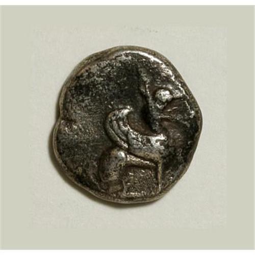 <B>Ionia, Teos.</B></I> Ca. 540-500 B.C. AR triobol (12 mm, 2.68 g). Griffin seated right, both fore-paws on ground / Rough incuse square. Balcer dies A53/P75; SNG Copenhagen 1434 (same dies). <BR><BR><b>Shipping:</b> Coins & Currency (<a target="_blank" href="http://www.heritageauctions.com/common/shipping.php">view shipping information</a>)