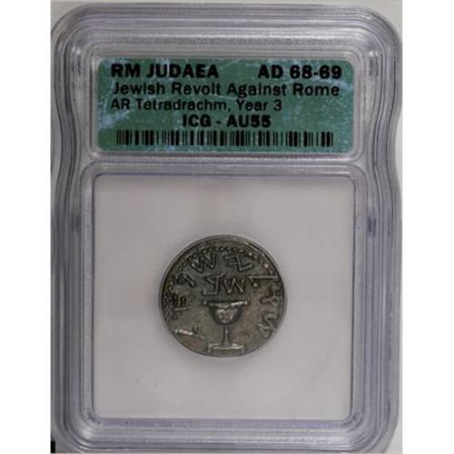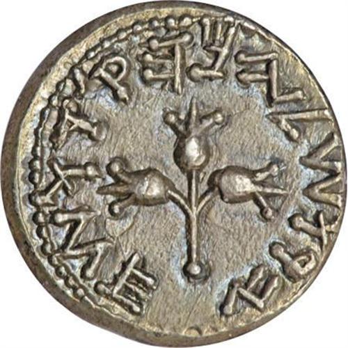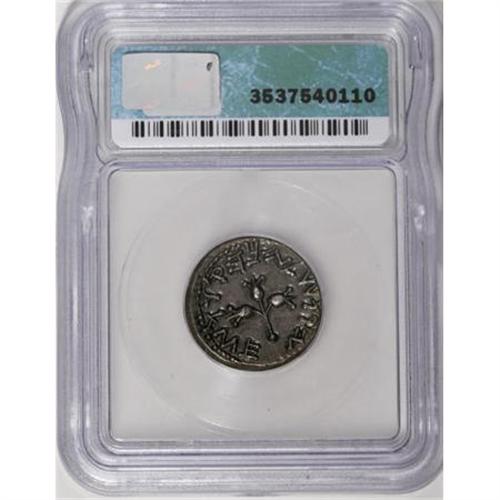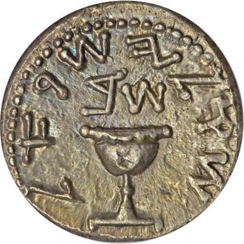<B>Judaea. Jewish War.</B></I> 66-70 C.E. AR shekel (21.5 mm). Year 2 (67/8 C.E.). Omer cup with pearled rim; date above / Sprig of three pomegranates. Meshorer 193; Hendin 659. AU55 ICG.<BR><I>From The Madison Collection.</B></I><BR><BR><b>Shipping:</b> Coins & Currency (<a target="_blank" href="http://www.heritageauctions.com/common/shipping.php">view shipping information</a>)