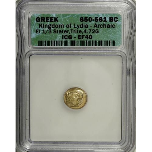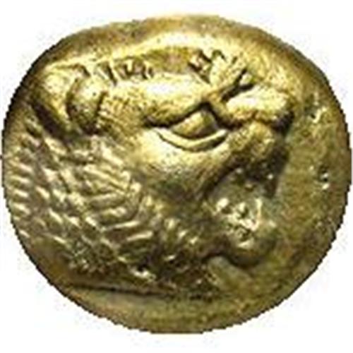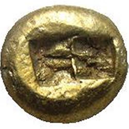 <B>Lydian Kingdom. Time of Alyattes II to Kroisos.</B></I> Ca. 610-546 BC. EL 1/3 stater (12 mm). Sardes. Head of roaring lion right, rayed sun on forehead / Double square incuse punch. Weidauer 86; SNG von Aulock 2868. XF40 ICG. <BR><BR><b>Shipping:</b> Coins & Currency (<a target="_blank" href="http://www.heritageauctions.com/common/shipping.php">view shipping information</a>)