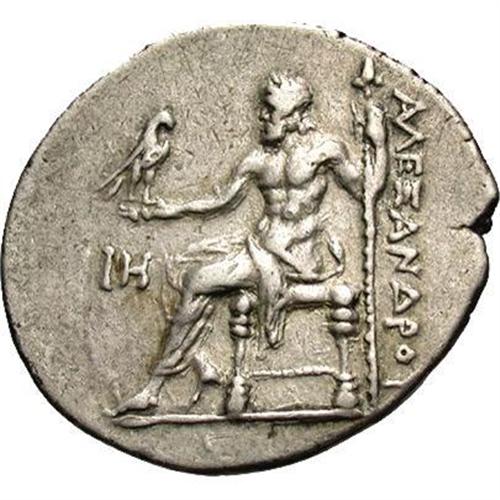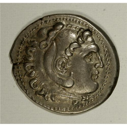 <B>Macedonian Kingdom. Alexander III.</B></I> 336-323 B.C. AR tetradrachm (27 mm). Perga, year 18 (204/3 B.C.). Head of Herakles right, wearing lion's skin headdress / Zeus seated left, holding eagle and sceptre; IH (date) in left field. Price 2930. Toned VF <BR><BR><b>Shipping:</b> Coins & Currency (<a target="_blank" href="http://www.heritageauctions.com/common/shipping.php">view shipping information</a>)