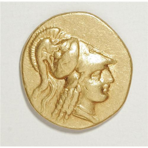 <B>Macedonian Kingdom. Alexander III.</B></I> 336-323 B.C. AV stater (17 mm, 8.44). Sidon, 333-305 B.C. Helmeted head of Athena right; griffin on bowl of helmet / Nike standing left, holding wreath and stylis; star in right field below wing. Price 3463; Muller Newell 5. VF. <BR><BR><b>Shipping:</b> Coins & Currency (<a target="_blank" href="http://www.heritageauctions.com/common/shipping.php">view shipping information</a>)