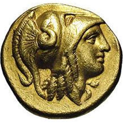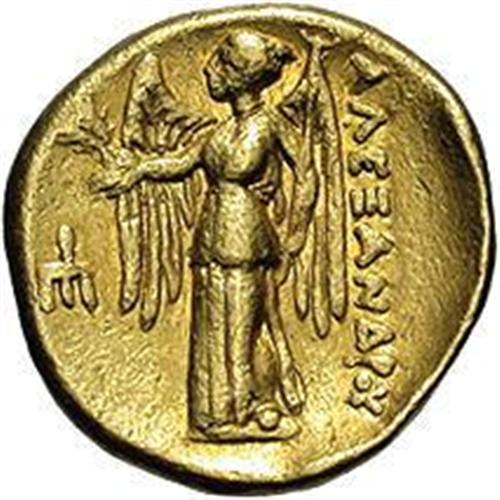 <B>Macedonian Kingdom. Alexander III, the Great.</B></I> 336-323 B.C. AV stater (18 mm, 8.32 g). Amphipolis, ca. 330-320 B.C. Helmeted head of Athena right; bowl of helmet decorated with coiled serpent / Nike standing left, holding wreath and stylis; trident-head downward in left field. Price 172. VF, ex jewelry.<BR><BR><b>Shipping:</b> Coins & Currency (<a target="_blank" href="http://www.heritageauctions.com/common/shipping.php">view shipping information</a>)