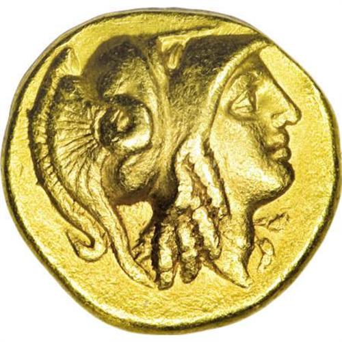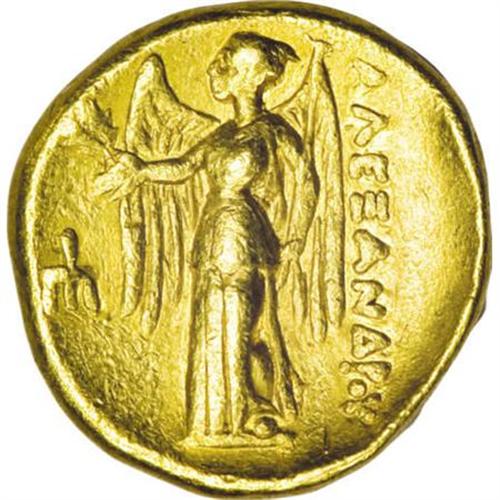 <B>Macedonian Kingdom. Alexander III, the Great.</B></I> 336-323 B.C. AV stater (18 mm, 8.53 g). Memphis, ca. 332-323 B.C. Helmeted head of Athena right; bowl of helmet decorated with griffin / Nike standing left, holding wreath and stylis; rose in left field, EY below wing. Price 3966. VF, probably ex jewelry. Rare.<BR><BR><b>Shipping:</b> Coins & Currency (<a target="_blank" href="http://www.heritageauctions.com/common/shipping.php">view shipping information</a>)