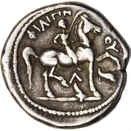 <B>Macedonian Kingdom. Philip II.</B></I> 359-336 B.C. AR tetradrachm (24 mm, 14.19 g). Amphipolis, ca. 315-294 B.C. Laureate head of Zeus right / Youth on horseback right, crowning horse with palm; Lambda and torch below horse, dolphin under raised foreleg. Le Rider pl. 48, 1; SNG ANS 807. Toned, near VF, small obverse die-break. <I>Ex 1984 ANA Auction (Kurt R. Krueger, 28-30 July 1984), 350.</B></I><BR><BR><b>Shipping:</b> Coins & Currency (<a target="_blank" href="http://www.heritageauctions.com/common/shipping.php">view shipping information</a>)