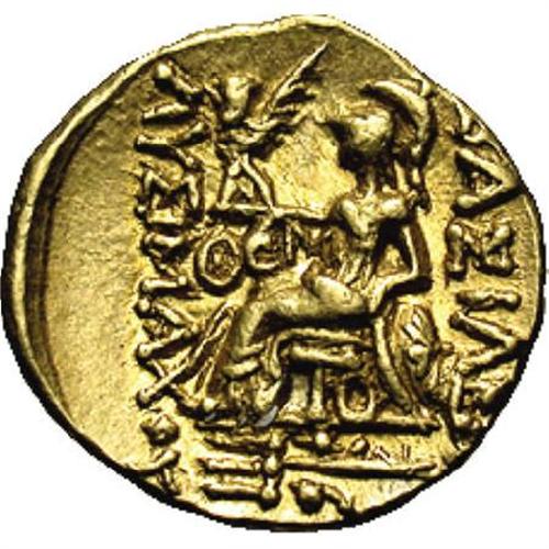 <B>Pontic Kingdom. Mithradates VI.</B></I> 120-63 B.C. AV stater (20 mm, 8.32 g). Tomis, time of the First Mithradatic War, 88-86 B.C. Diademed head of deified Alexander the Great right, wearing horn of Ammon / Athena seated left, holding Nike in extended arm, resting elbow on shield; trident in exergue. SNG Copenhagen 1091. VF, obverse die rust.<BR><BR><b>Shipping:</b> Coins & Currency (<a target="_blank" href="http://www.heritageauctions.com/common/shipping.php">view shipping information</a>)
