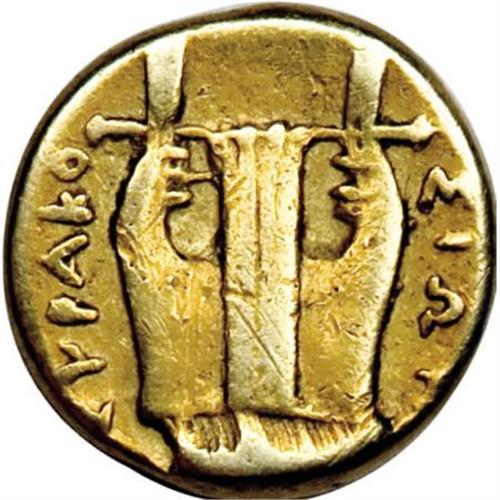 <B>Sicily, Syracuse. Agathokles.</B></I> Ca. 317-289 B.C. EL 12 1/2 litrae (11 mm, 1.78 g). Ca. 310-305 B.C. Laureate head of Apollo left / Lyre. Jenkins grp. A, uncertain dies; SNG ANS 617. Fine.<BR><BR><b>Shipping:</b> Coins & Currency (<a target="_blank" href="http://www.heritageauctions.com/common/shipping.php">view shipping information</a>)