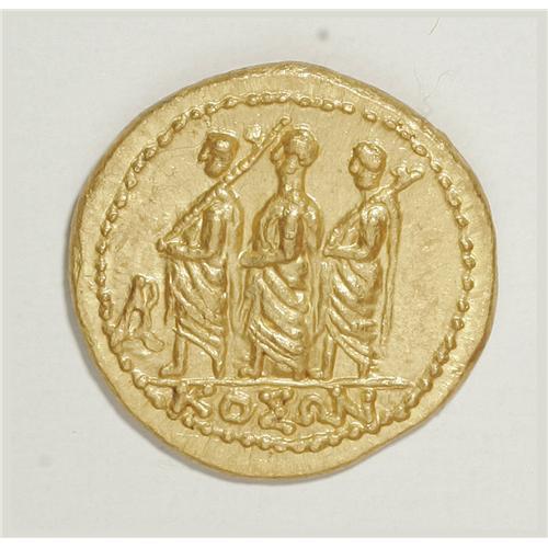 <B>Thracian Dynasts. Koson.</B></I> Ca. mid 1st century B.C. AV stater (20 mm, 8.32 g). Roman consul walking left, accompanied by two lictors; BR monogram to left / Eagle standing left on sceptre, holding wreath. RPC 1701; BMC Thrace p. 208, 2. XF. <BR><BR><b>Shipping:</b> Coins & Currency (<a target="_blank" href="http://www.heritageauctions.com/common/shipping.php">view shipping information</a>)