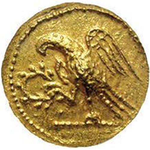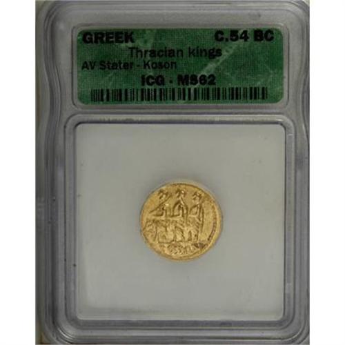 <B>Thracian Dynasts. Koson.</B></I> Ca. mid 1st century B.C. AV stater (18 mm). Roman consul walking left, accompanied by two lictors; BR monogram to left / Eagle standing left on sceptre, holding wreath. RPC 1701; BMC Thrace p. 208, 2. MS62 ICG.<BR><BR><b>Shipping:</b> Coins & Currency (<a target="_blank" href="http://www.heritageauctions.com/common/shipping.php">view shipping information</a>)