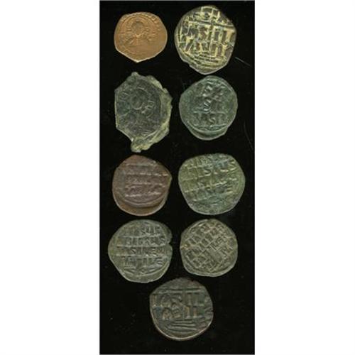 <B>Lot of nine anonymous Byzantine folles.</B></I> All types: Bust of Christ / Various, typically either a legend or a cross. Average Fine to VF. <BR><BR><BR><b>Shipping:</b> Coins & Currency (<a target="_blank" href="http://www.heritageauctions.com/common/shipping.php">view shipping information</a>)