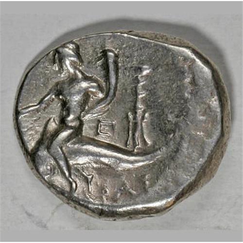 <B>Lot of two nomoi from Taras in Calabria.</B></I> All coins: Youth on horseback right / Taras astride dolphin left. Both coins Fine. <BR><BR><b>Shipping:</b> Coins & Currency (<a target="_blank" href="http://www.heritageauctions.com/common/shipping.php">view shipping information</a>)