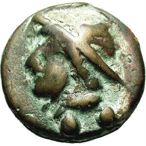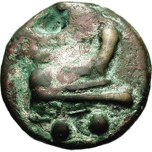 <B>Anonymous.</B></I> Ca. 240-225. Æ aes grave sextans (34 mm, 41.00 g). Helmeted head of Mars left; two pellets below / Prow of galley right; two pellets below. Thurlow-Vecchi 55; Crawford 35/5. Fine, brown patina, some encrustation around devices. <BR><BR><b>Shipping:</b> Coins & Currency (<a target="_blank" href="http://www.heritageauctions.com/common/shipping.php">view shipping information</a>)