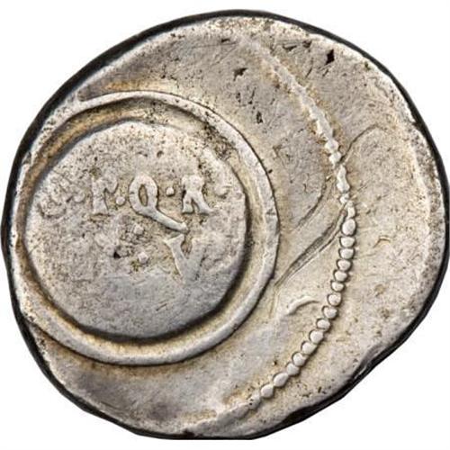 <B>Augustus.</B></I> 27 B.C-A.D. 14. AR denarius (18 mm, 3.67 g). Spanish mint (Colonia Caesaraugusta?). Struck circa 19-18 BC. Bare head right / Shield. RIC 42a; BMC 381; RSC 294. Near VF, scratches on reverse, reverse struck off-center.<BR><BR><b>Shipping:</b> Coins & Currency (<a target="_blank" href="http://www.heritageauctions.com/common/shipping.php">view shipping information</a>)