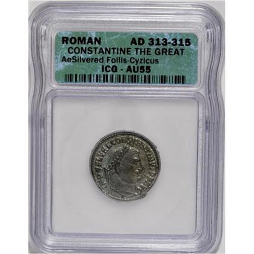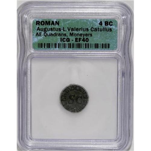 <B>Lot of two certified Roman Imperial bronze coins.</B></I> Includes: Augustus. Quadrans. L. Valerius Catullus, moneyer. XF40 ICG // Constantine I. Follis. Cyzicus. AU55 ICG.<BR><I>From The Madison Collection.</B></I><BR><BR><b>Shipping:</b> Coins & Currency (<a target="_blank" href="http://www.heritageauctions.com/common/shipping.php">view shipping information</a>)