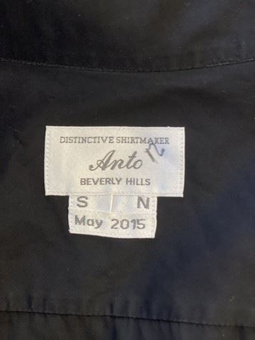 And Then There Were None TV mini series (2015) - General John MacArthur (Sam Neill) black, custom made "Anto Beverly Hills" dress shirt. Initils "SN" and "May 2015" sewn into the tag.