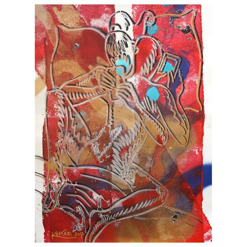"And Then They Woke Up" is a mixed media original painting on paper, by Mark Kostabi. The piece is hand signed and comes with a certificate of authenticity. Measures approximately 30" x 22.5".