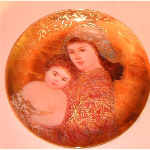 And Unto Us a Child is Born GOLD EDITION 4th of 4 porcelain plates in the Hibel Holiday series by Edna Hibel...
