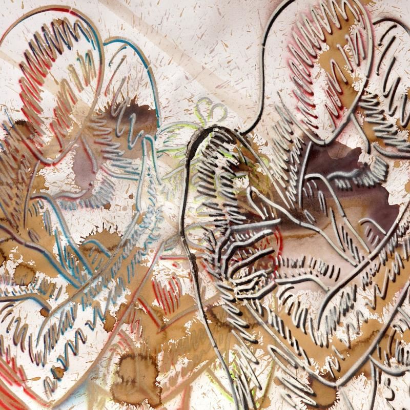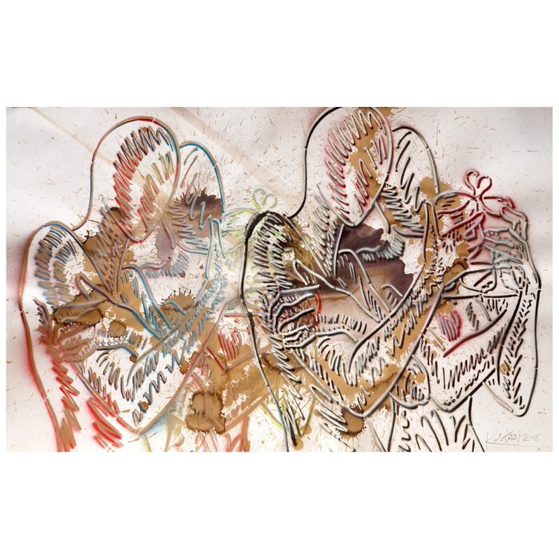 "And What I Assume" is a mixed media original painting on paper, by Mark Kostabi. The piece is hand signed and comes with a certificate of authenticity. Measures approximately 26" x 40".