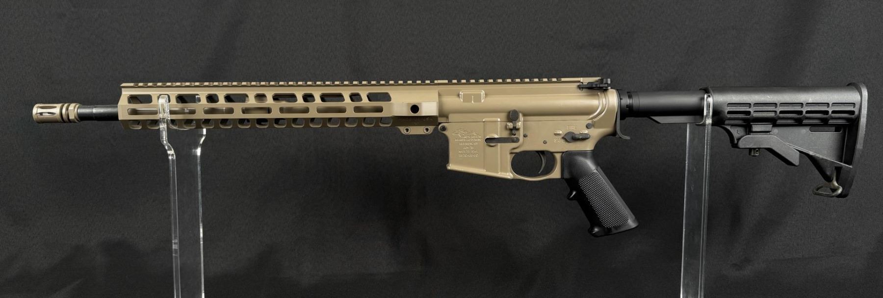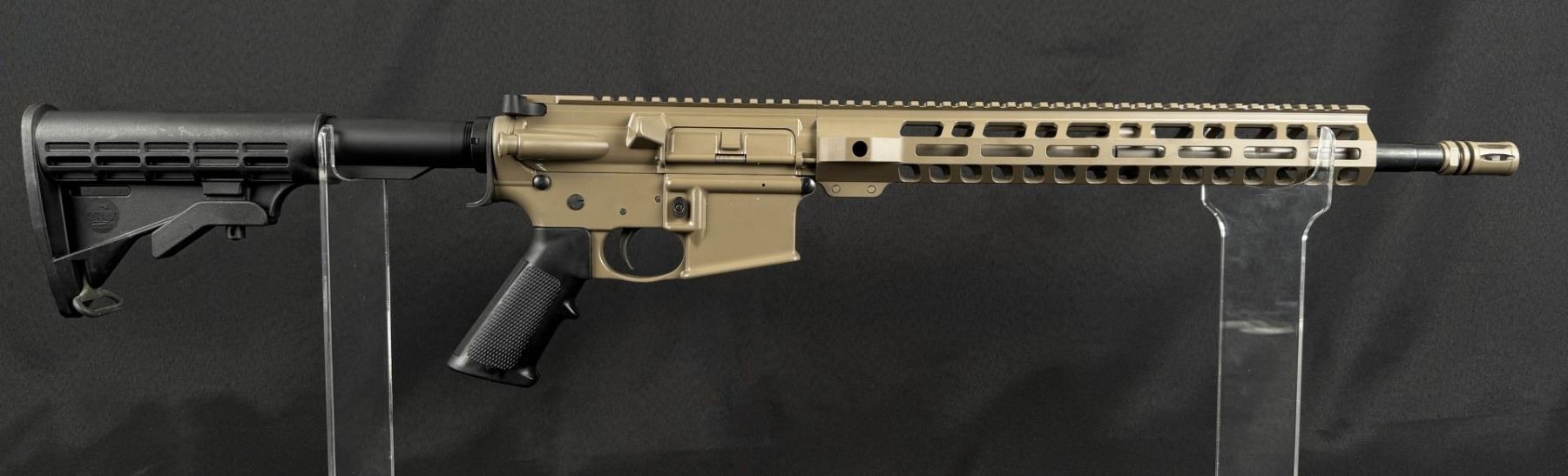 Cerakoted. 16" Barrel. Brand new, and unfired. Requires FFL Transfer. C&R not accepted. No sales to the following areas, a bid from any of these restricted areas will result in immediate termination of your agility to place bids with our auction company in perpetuity: California, Colorado, Connecticut, Delaware, Washington DC, Illinois, Hawaii, Maryland, Massachusetts, Washington State, Rhode Island, New Jersey and New York.