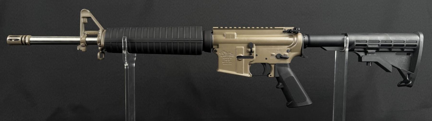 Cerakoted. 16" Barrel. Brand new, and unfired. Requires FFL Transfer. C&R not accepted. No sales to the following areas, a bid from any of these restricted areas will result in immediate termination of your agility to place bids with our auction company in perpetuity: California, Colorado, Connecticut, Delaware, Washington DC, Illinois, Hawaii, Maryland, Massachusetts, Washington State, Rhode Island, New Jersey and New York.