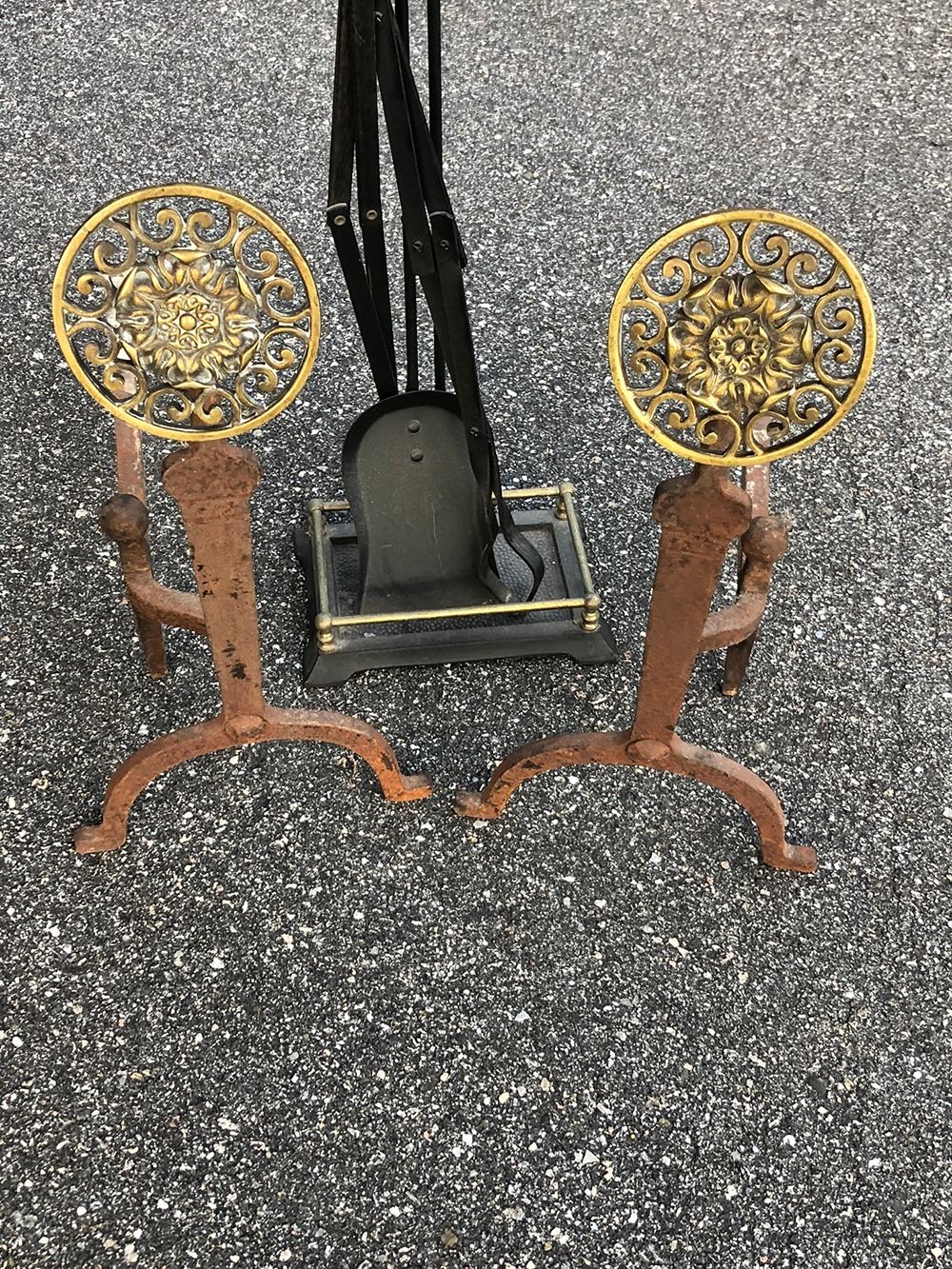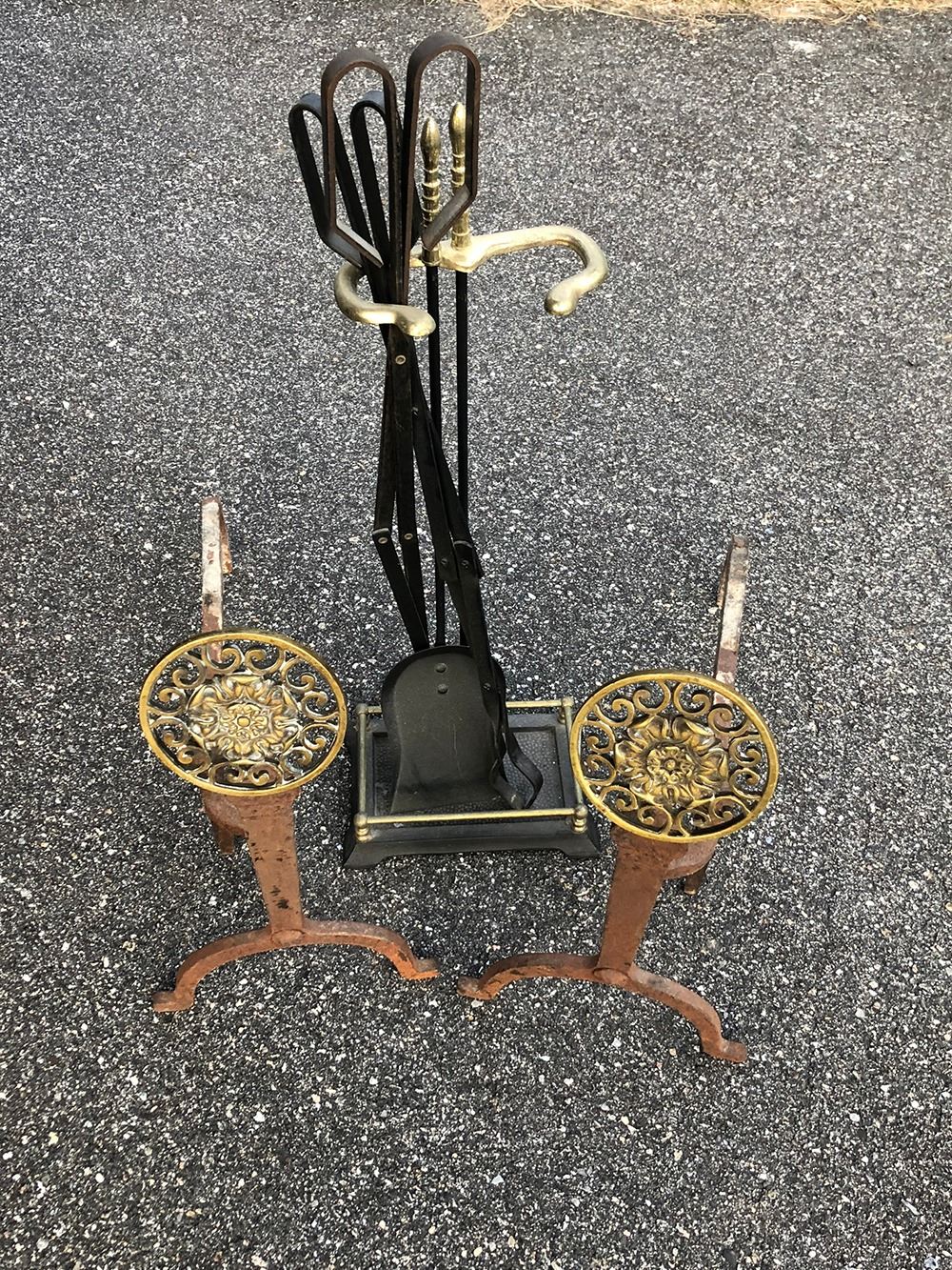 Andirons and fireplace tools.