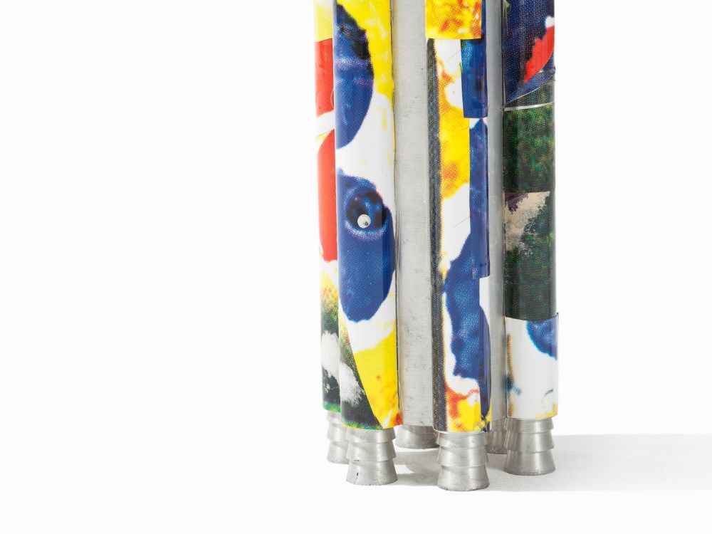 This is a model of a Russian Proton rocket with first designs for the project WEST in SPACE by the German German artist Andora (b. 1958). The pop art influence is clearly visible in the colorful design of the style of the artist. In 1992, the artist was commissioned by the Russian space program to paint a Proton rocket. Together with the artist Aitmatow, Leiderman, Rauch and Reich, he designed the rocket that was afterwards genuinely launched into space. Andora was greatly fascinated by space flight and space in general that he was trained as a cosmonaut in Russian Star City. Andora’s art succeeded in orbiting the earth in space and this model of the Proton rocket with Andora’s unique design is a special memorabilia of this artwork.