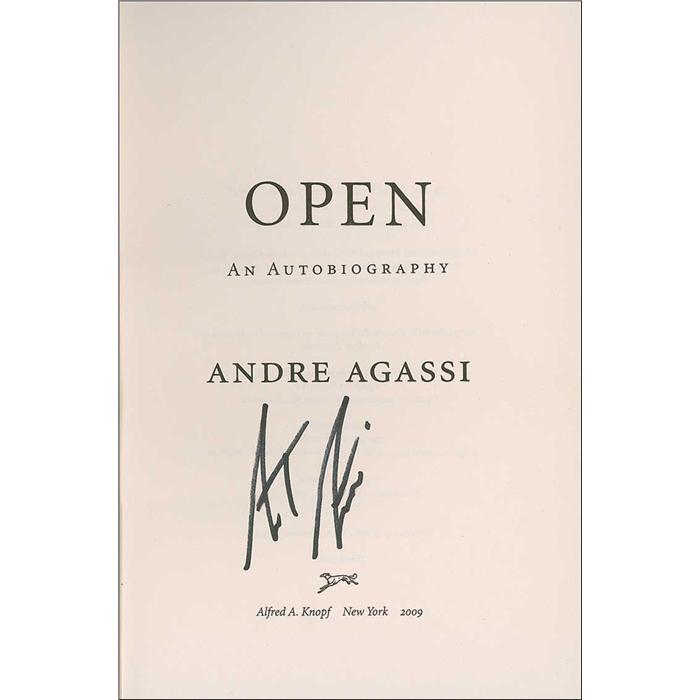Signed book: Open: An Autobiography. First edition, first printing. NY: Alfred A. Knopf, 2009. Hardcover with dustjacket, 6.5 x 9.5, 386 pages. Signed on the title page in black felt tip. In very fine condition. Pre-certified Steve Grad/PSA/DNA and RRAuction COA.