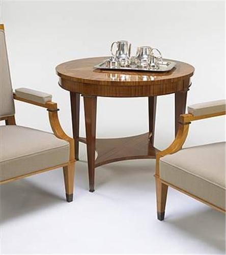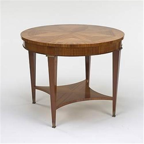 Andre Arbus<BR>lamp table<BR>France, c. 1940<BR>mahogany, brass<BR>35.25"dia x 28.25"h<BR>Sold with letter of authenticity from Yves Gastou.<BR>Provenance: Private collection, New York<BR><BR><BR><BR><BR>