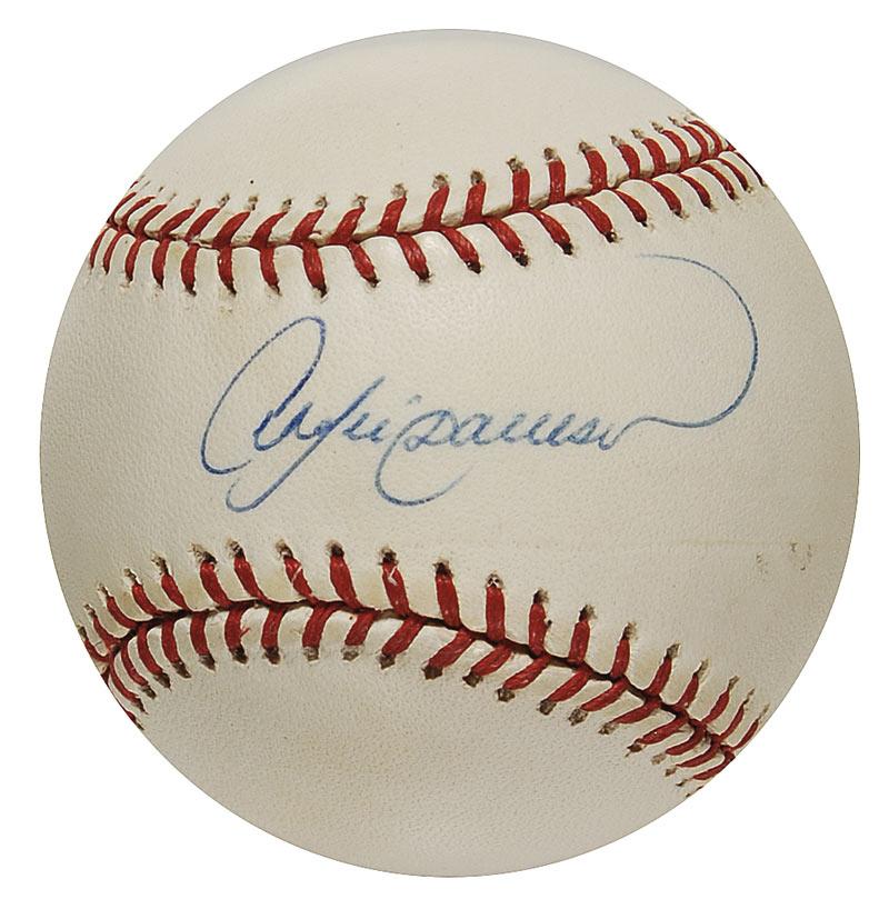 Official Rawlings National League baseball signed in blue ballpoint on the sweet spot by the new Hall of Famer. In fine condition, with a subtle overall shade of toning. Pre-certified Steve Grad/PSA/DNA and RRAuction COA.
