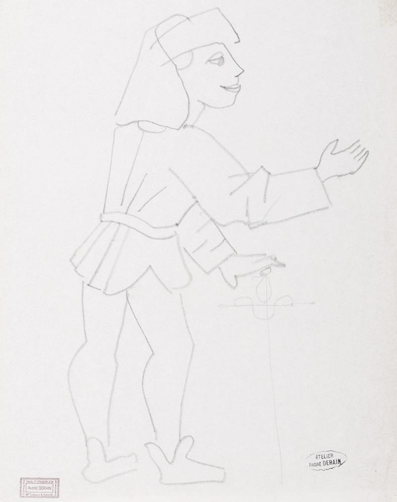 Andre Derain, French Art, 1880 - 1954, Boy Leaning on Sword, Pencil, 27x21cm, Signed with the atelier stamp of Andre Derain., , , Raymond Kuaublich Collection, Andre Charlemaque (the artist's son), France., ,