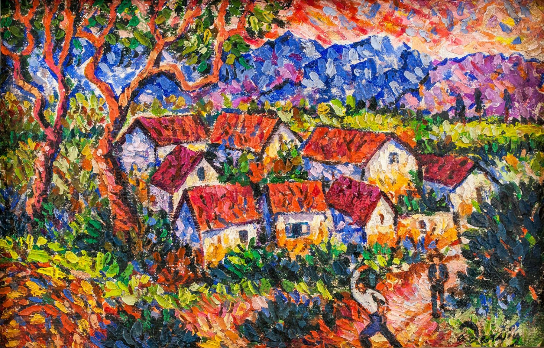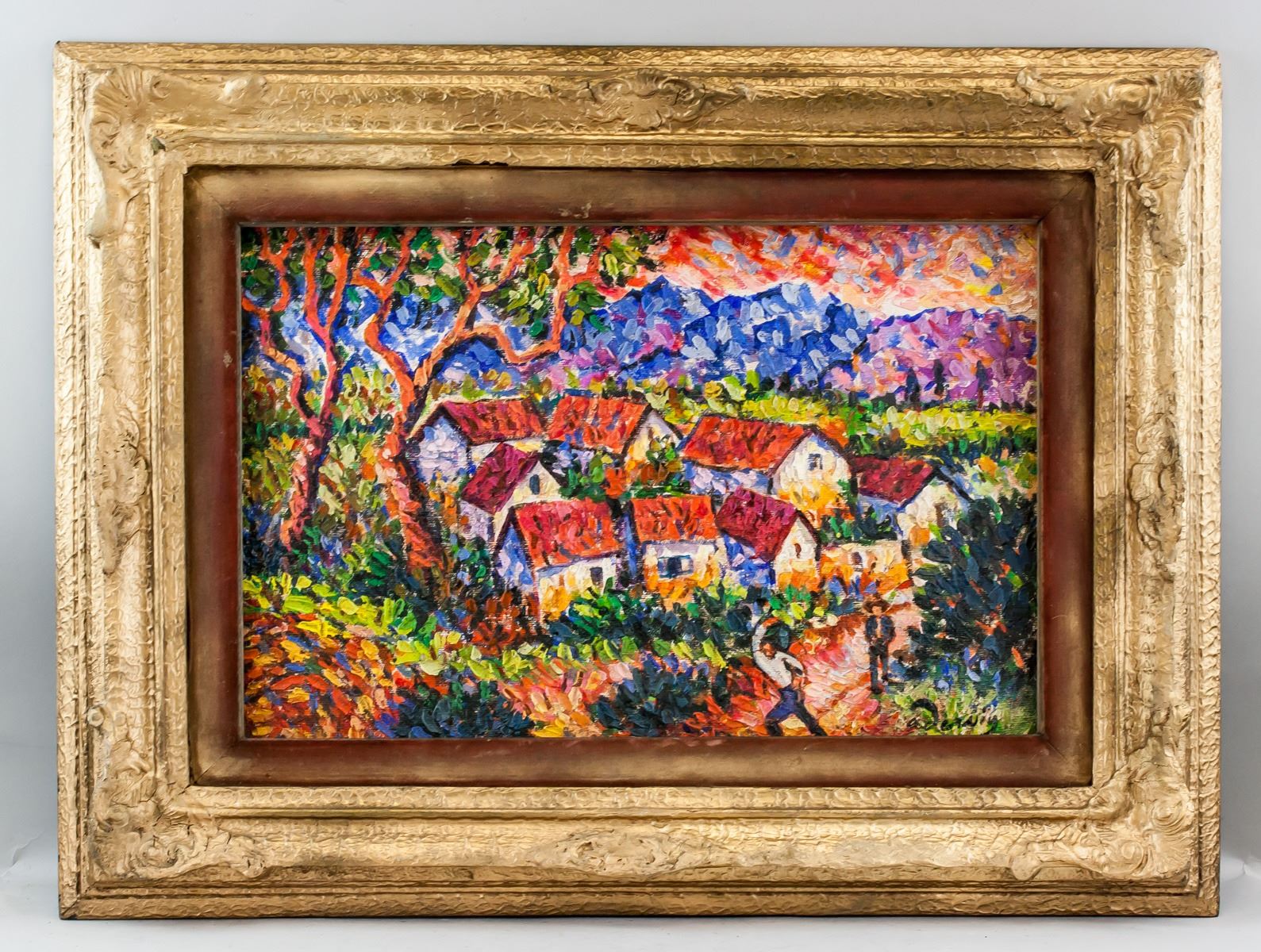 Oil on canvas, framed. Featuring landscape scene. Signed Derain on the lower right corner. Attributed to Andre Derain (1880-1954, French). 36 x 55 cm (14.2 x 21.7 inches). Frame size: 24.0 x 32.0 inches).