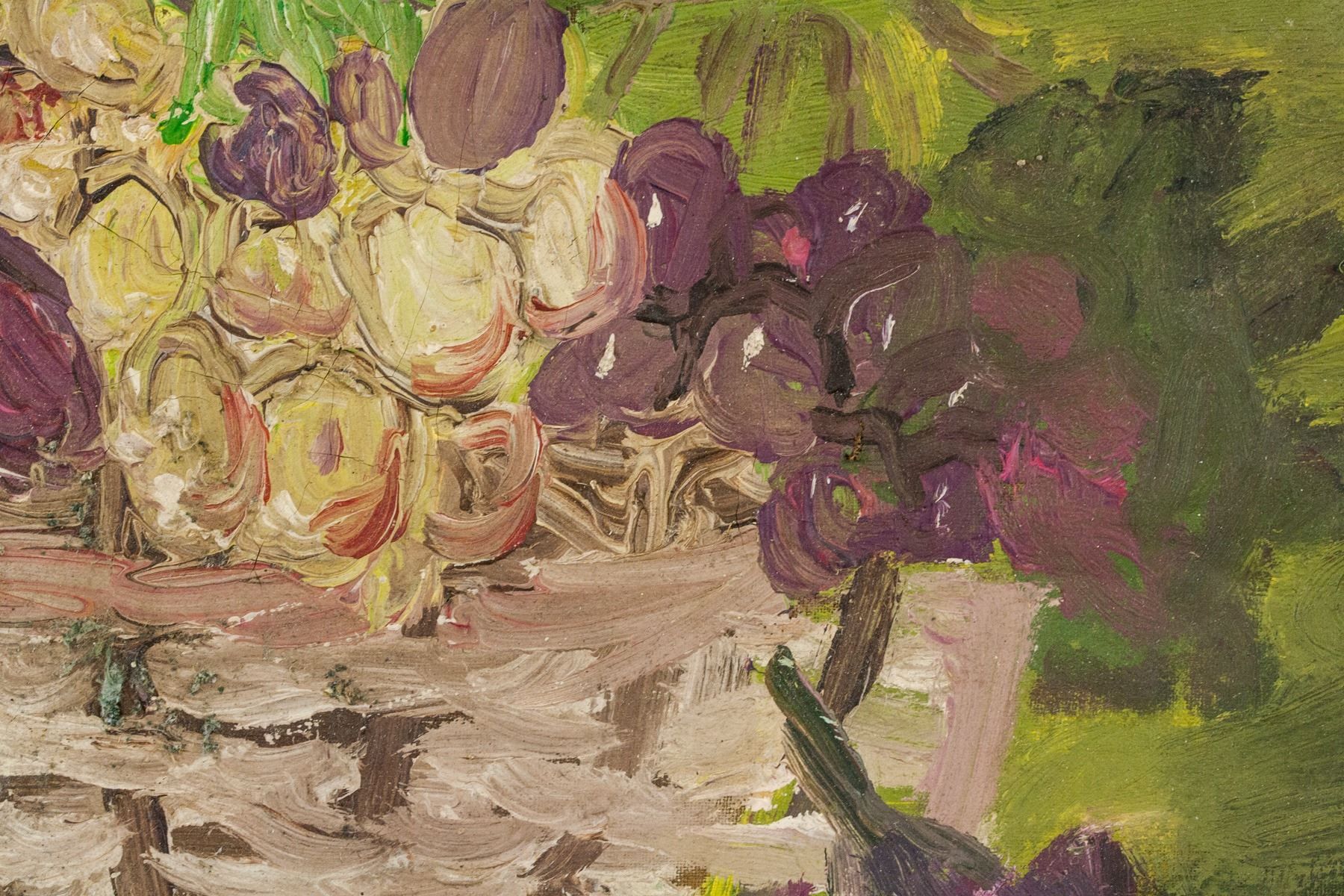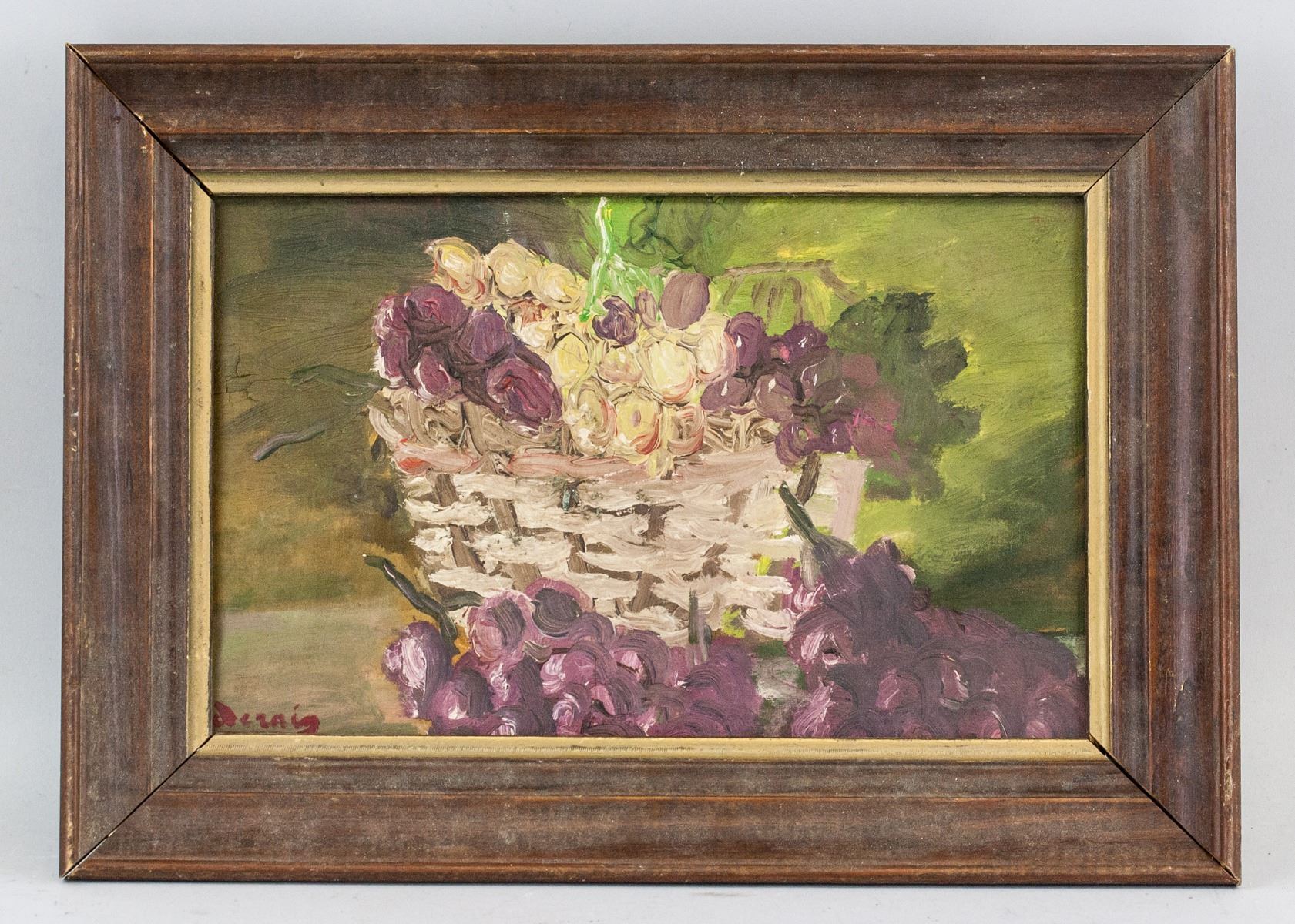Oil on canvas, framed. Featuring a still of grapes in basket. Signed Derain on the lower left corner. Attributed to Andre Derain (1880-1954, French). 18 x 29 cm (7 x 11.25 inches). Framed size: 28 x 39 cm (11 x 15.25 inches). PROVENANCE: Southern Ontario estate