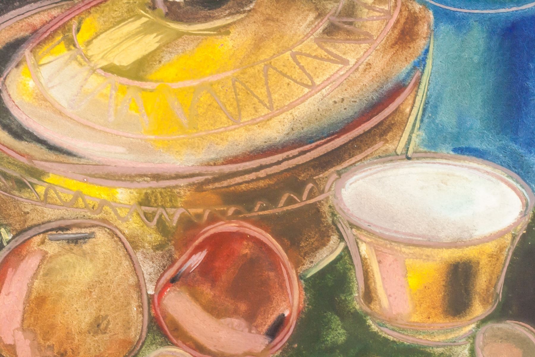 Pastel on paper. Featuring still-life of household items. Signed "derain" to the bottom left. Attributed to Andre Dreain (1880-1954, French). 46 x 55 cm (18 x 21.5 in). Provenance: This lot carries limited provenance from a Southern Ontario estate