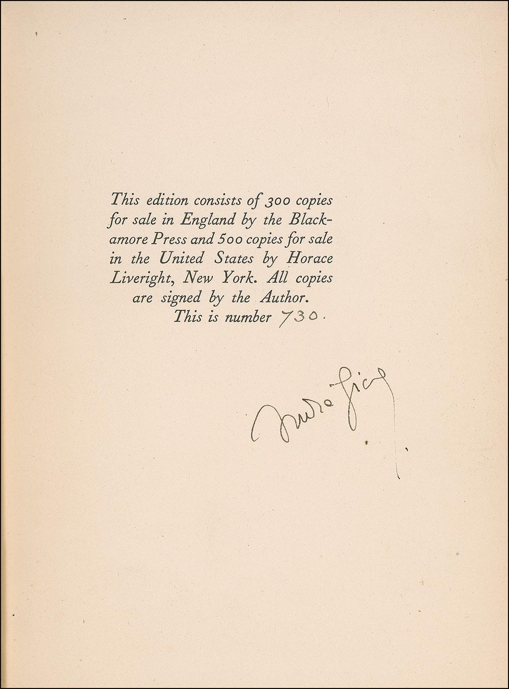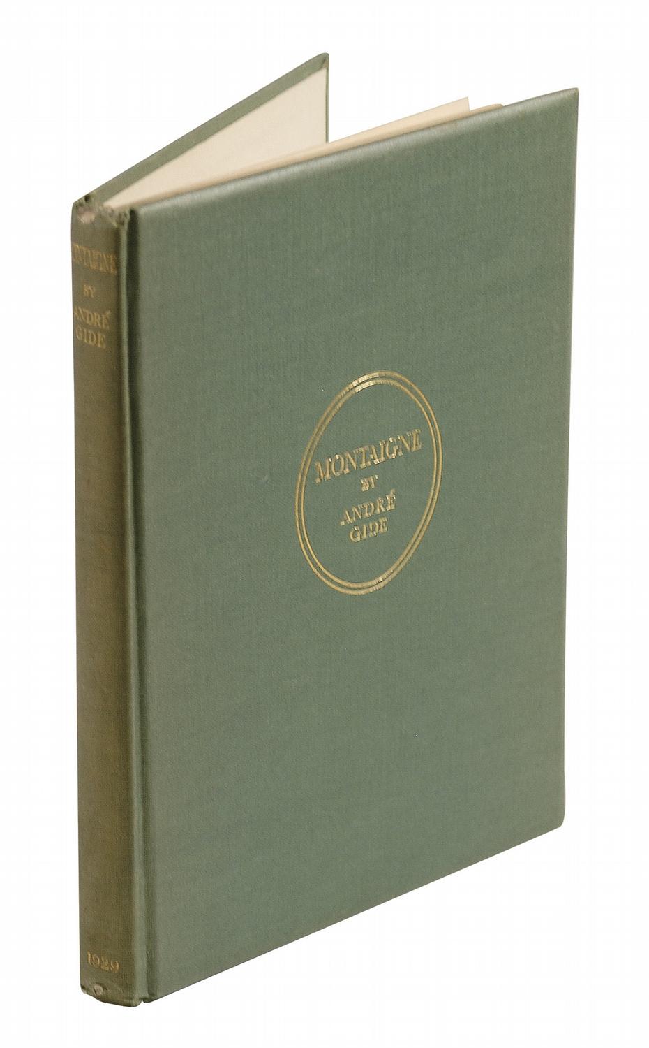 French author (1869–1951) and winner of the Nobel Prize in literature in 1947. Signed book: Montaigne. Limited edition of 800 copies (this being No. 730). NY: Horace Loveright, 1929. Hardcover, 5.75 x 7.75, 128 pages. Signed on the limitations page in black ink. In fine condition, with several pencil notations to first free end page and at various places within the text, and some light dings to head and tail of the moderately-sunned spine.