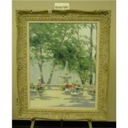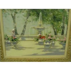 Oil on canvas. Andre Gisson. Paris Garden Scene with Fountain. Circa 1960's. Impressionistic style. From an estate. Owner purchased the painting at auction in the 1960's. Appraised at that time for $550.00. Canvas - 30" x 24. Overall - 38" x 32". Ornate period frame. Signed. Condition: Excellent