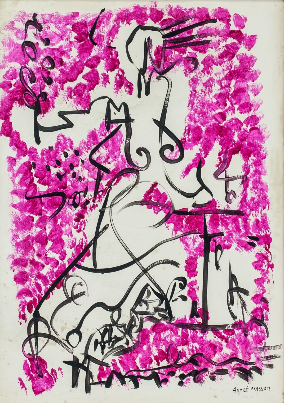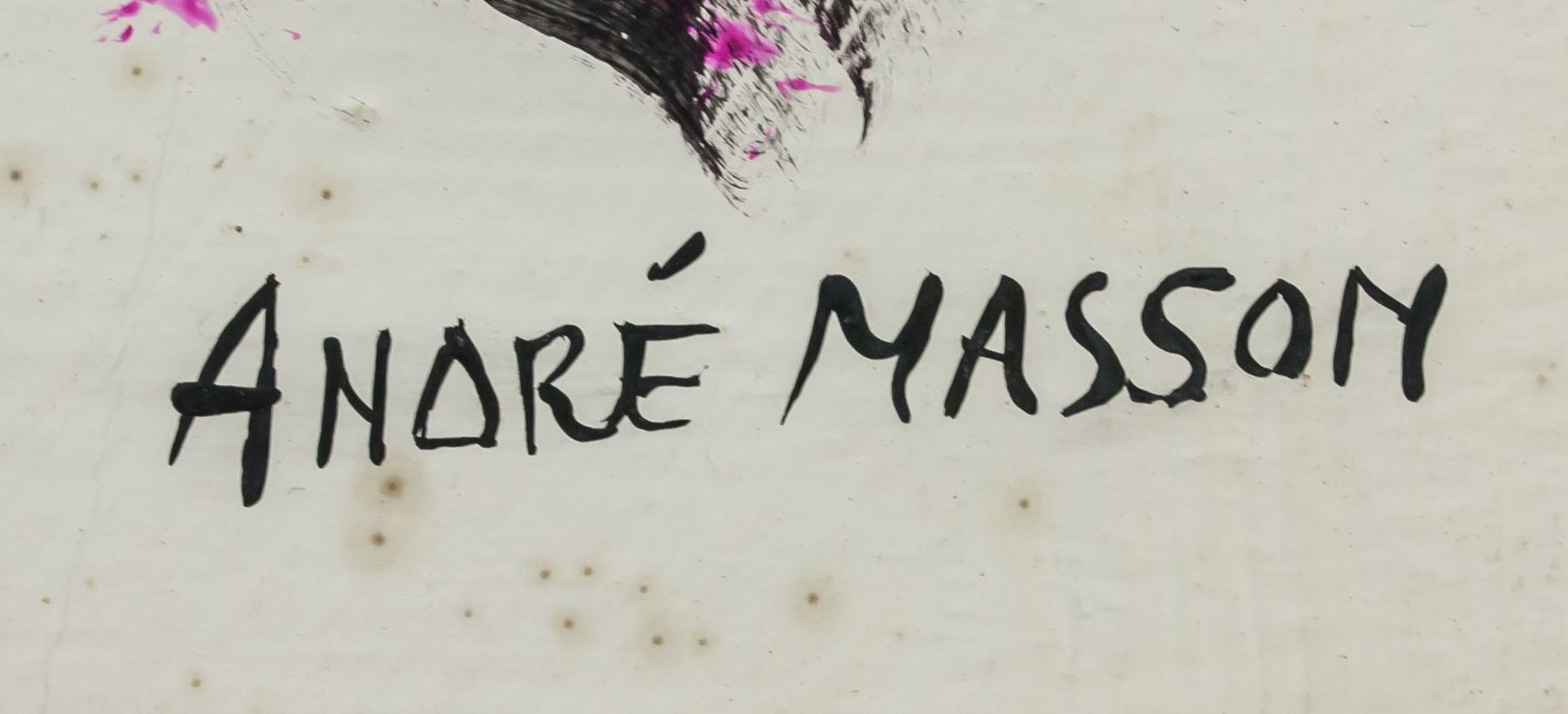Oil on canvas, framed. Featuring a portrait sketch of nude. Signed ANDRE MASSON (1896-1987, French) on the lower right corner. 55.5 x 39.5 cm (21.9 x 15.6 inches). Frame size: 60 x 44 cm (23.6 x 17.3 inches). PROVENANCE: Southern Ontario estate