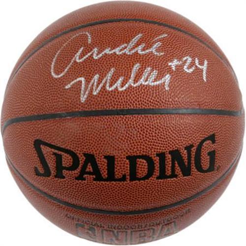 <B>Andre Miller Single Signed Basketball.</B></I> The NBA point guard Andre Miller has been known for his assist efficiency, leading the league in 2001-02 and ranking in the top 15 all-time assist-per-game. Here we offer a new Spalding basketball with a perfect silver sharpie signature from the man himself. <I>LOA from PSA/DNA.</B></I><BR><BR><b>Shipping:</b> Balls, Pucks, etc., Large (<a target="_blank" href="http://www.heritageauctions.com/common/shipping.php">view shipping information</a>)