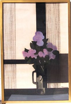 Andre Minaux, Fleurs Mauve, Pastel and Charcoal Drawing