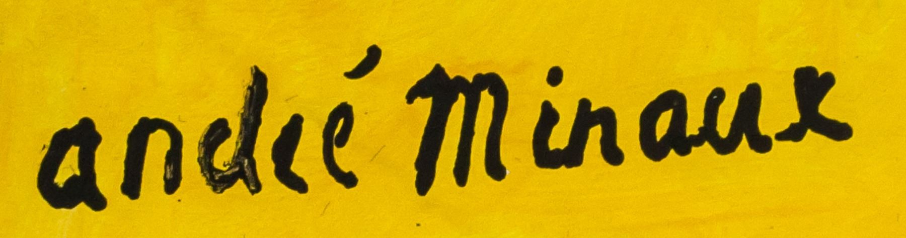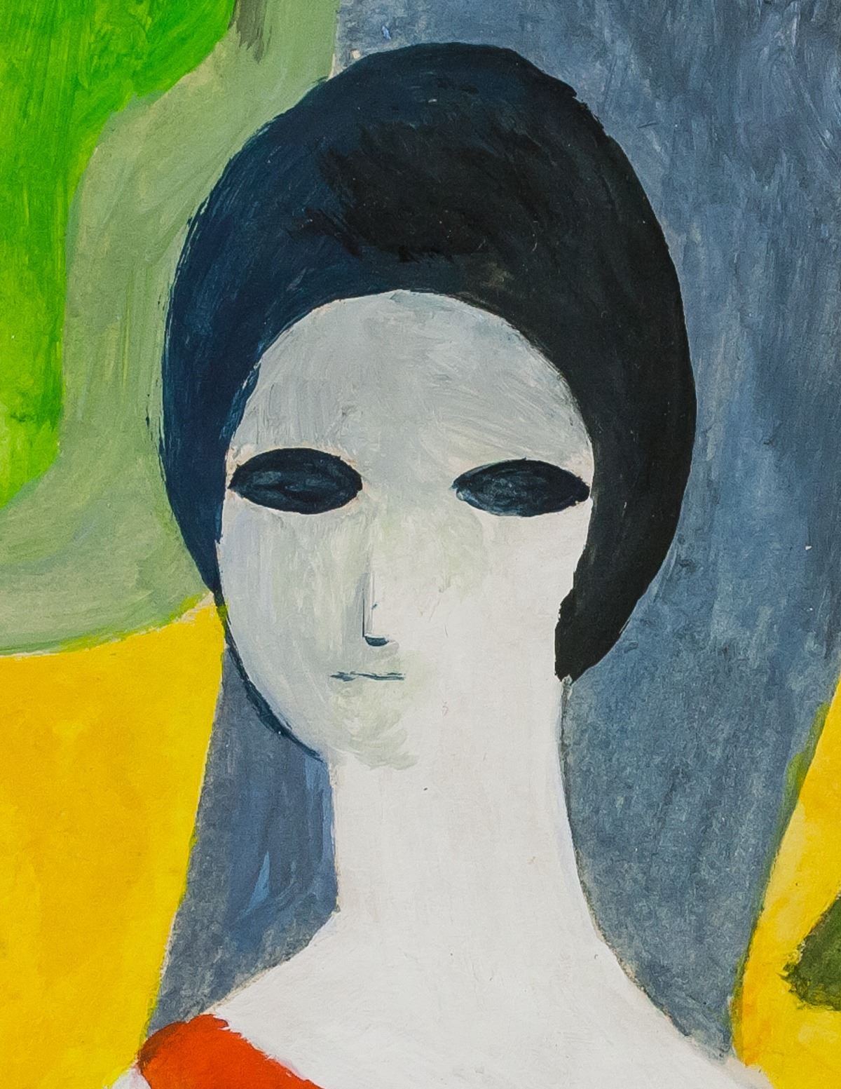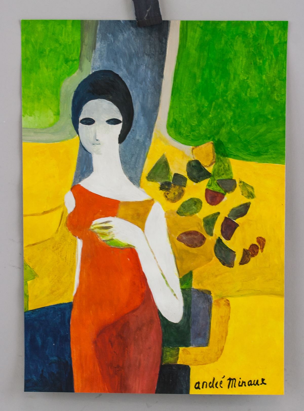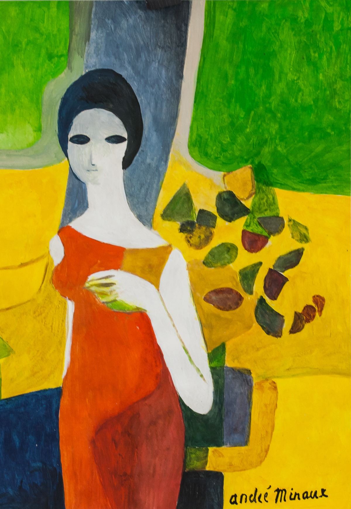 Tempera on paper. Featuring a portrait of a woman. Signed andre Minaux on the lower right corner. Inscribed 144 in pencil on verso. Stamped Byne on verso. Attributed to Andre Minaux (1923-1986, French). 26 x 20 cm (10.2 x 7.9 inches). PROVENANCE: Southern Ontario estate